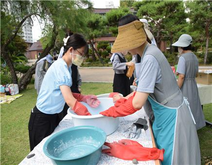 6월 21일 총원 잔디밭에서 ‘지구별 숨숨마을’과 ‘소비녀 숨_PROJECT’가 공동 기획한 ‘지구 숨숨장’이 열렸습니다. 오전엔 푸른솔 어린이집 어린이들이 함께 한 돗자리 장이 열렸고, 오후에는 성인들과 함께한 플리마켓으로 신청자만 참여할 수 있도록 소규모로 진행되었습니다. 폐비닐을 이용한 업싸이클링 작품, 친환경 핸드메이드 소품을 비롯하여 양성소에서 준비한 친환경세제 만들기 체험으로 지구를 사랑하는 우리의 마음과 삶을 서로 나누는 소중한 하루를 보냈습니다. 총원 마당을 활짝 열어 함께 해주신 수녀님들께 감사드립니다.